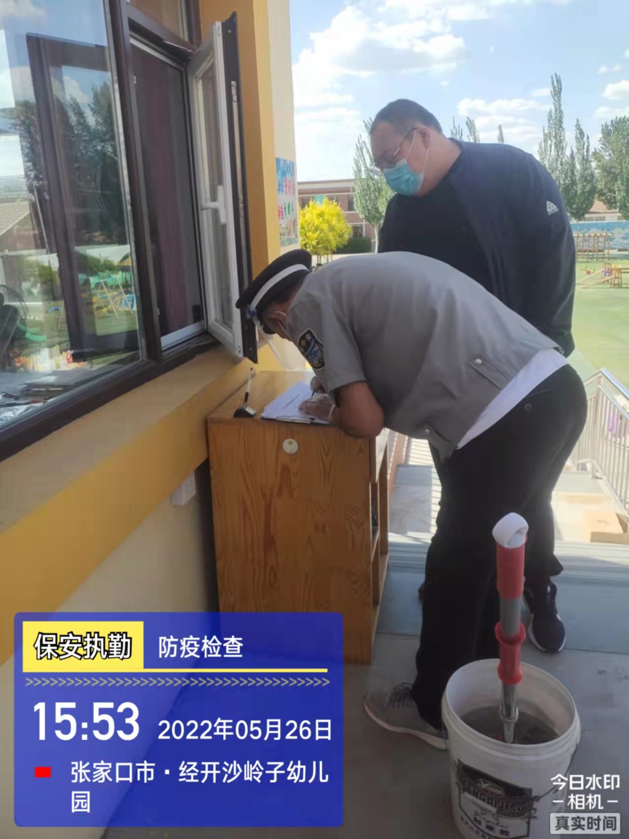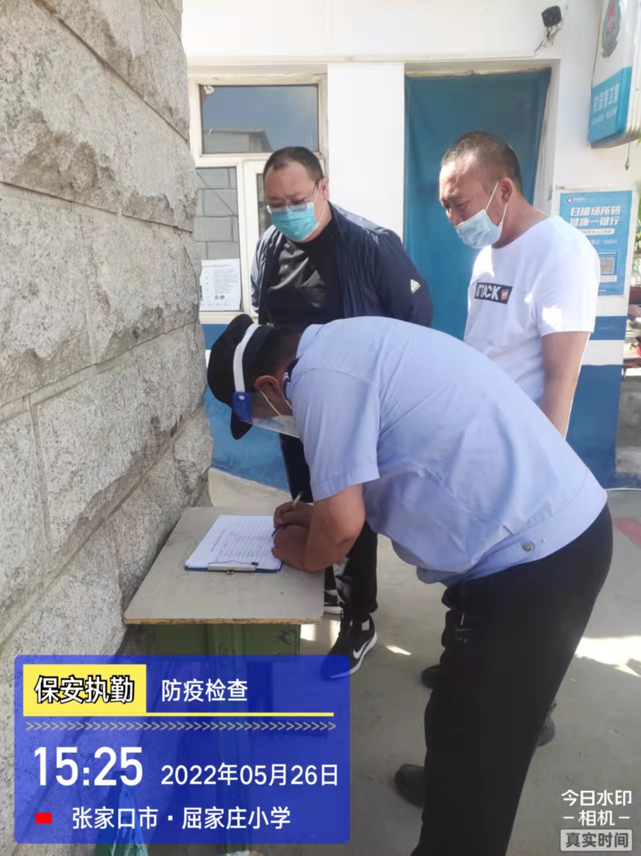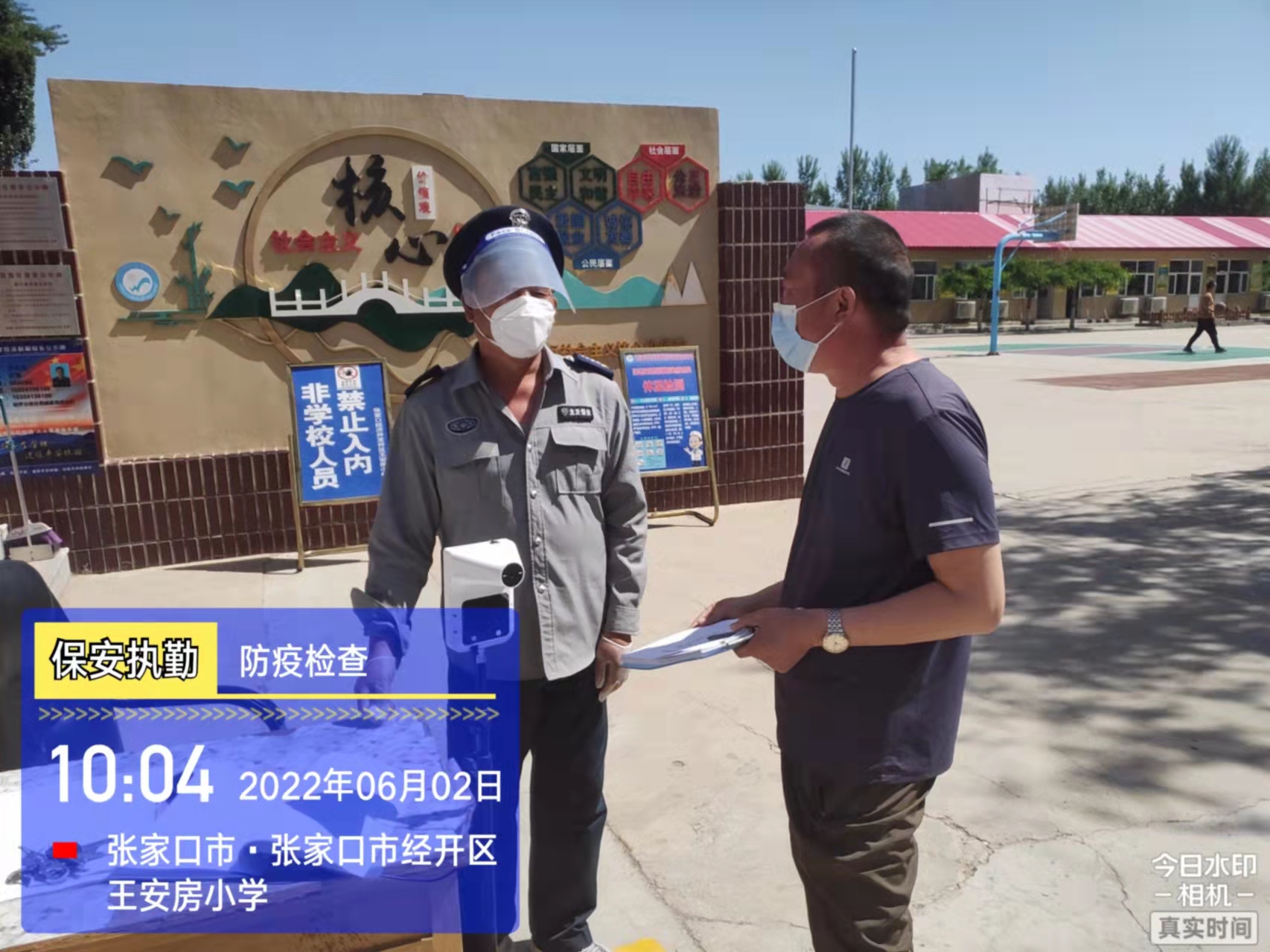 會后,我公司迅速召開“疫情期間學(xué)校門衛(wèi)安全防控工作要求”的會議,制定了校園安全防疫規(guī)定:疫情防控期間,校園保安隊(duì)員必須穿制服,規(guī)范佩戴“三件套”(防護(hù)隔離面罩、N95口罩、一次性PVC手套);進(jìn)出校園的師生必須測量體溫,外來人員需登記、測溫、掃碼(幸福張家口,呈綠碼)、且持7日內(nèi)核酸陰性檢測結(jié)果;保安室需保持干凈整潔,物品擺放有序,勤開窗通風(fēng),定期噴灑消毒藥水。為此,公司特成立校園防疫檢查小組,由副經(jīng)理帶隊(duì),協(xié)同主管大隊(duì)長對經(jīng)開區(qū)所有中小學(xué)校安保崗位進(jìn)行防疫工作檢查,檢查期間,發(fā)現(xiàn)問題,現(xiàn)場處理,并及時(shí)與校方領(lǐng)導(dǎo)溝通,杜絕同樣問題再次出現(xiàn),確保校園防疫安保工作萬無一失,為各校師生鑄就一道安全防線!